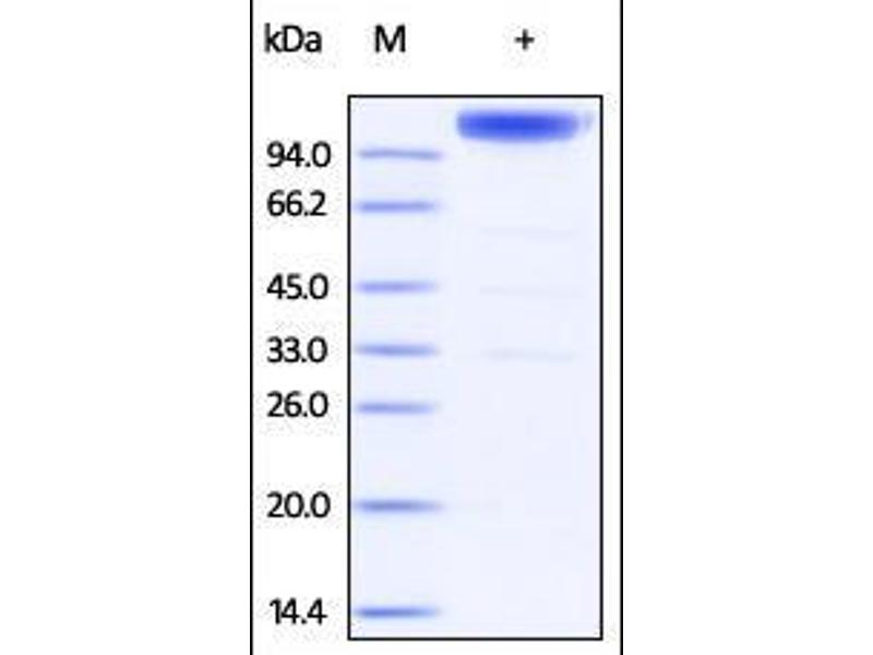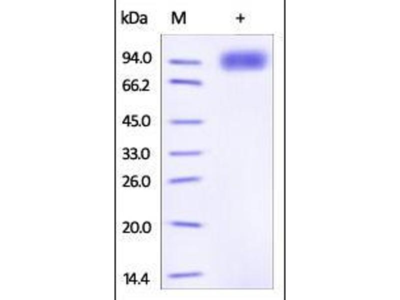 The purity of the protein is greater than 85 % as determined by SDS-PAGE and Coomassie blue staining.