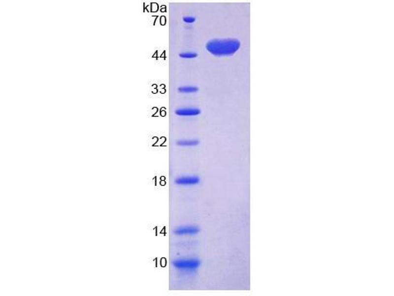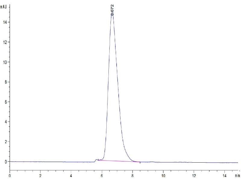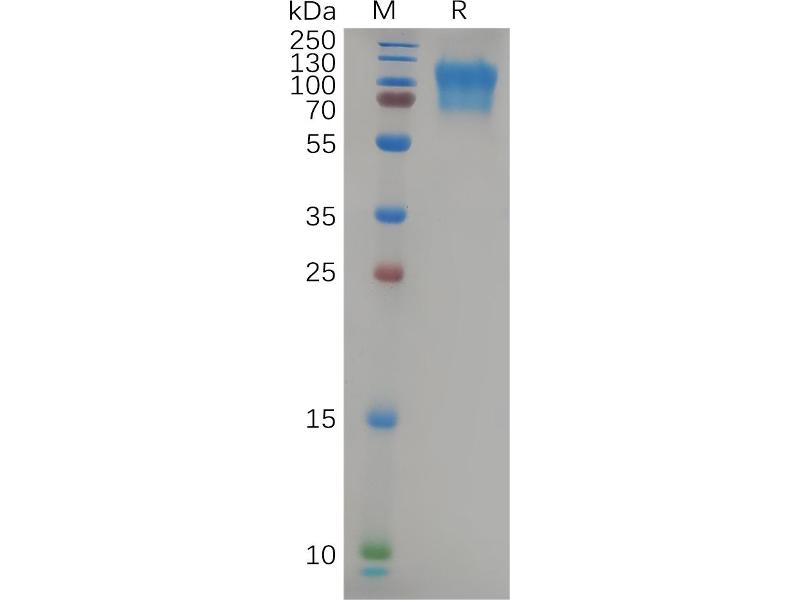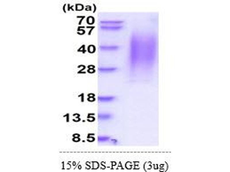 The purity of the protein is greater than 95 % as determined by SDS-PAGE and Coomassie blue staining.