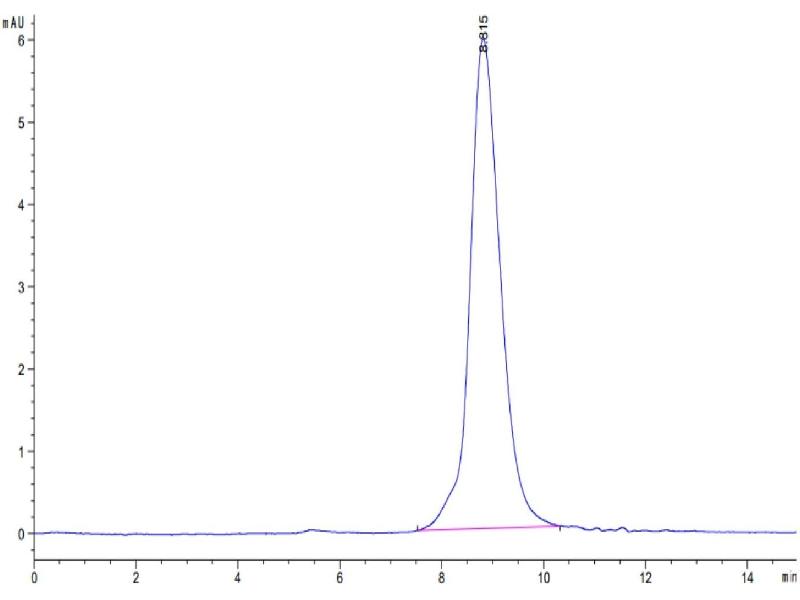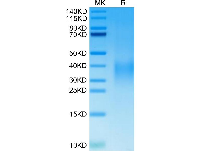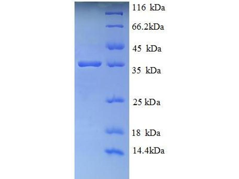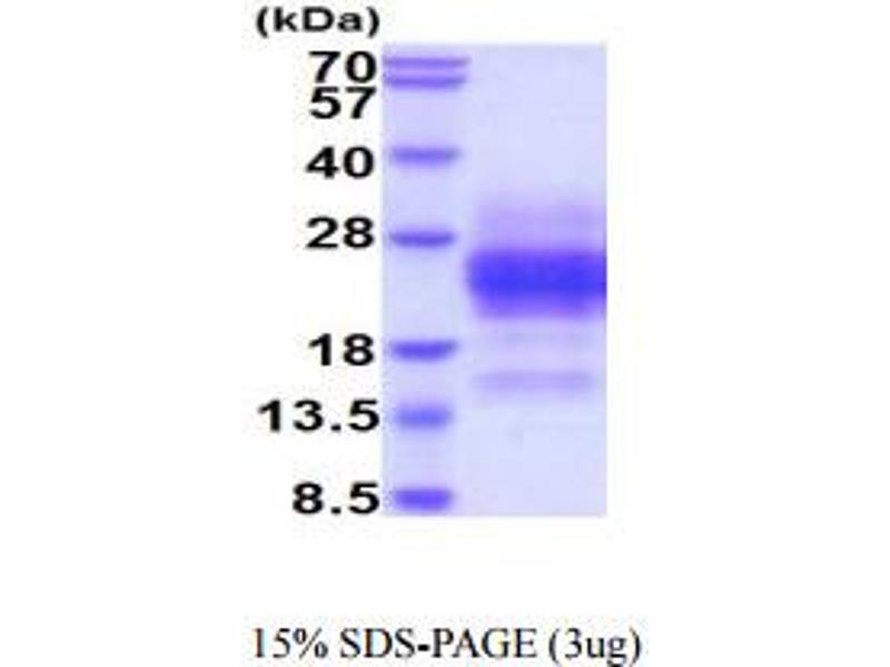 The purity of the protein is greater than 95 % as determined by SDS-PAGE and Coomassie blue staining.