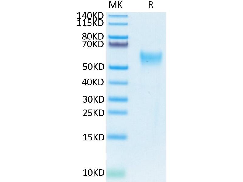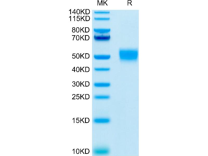 The purity of the protein is greater than 95 % as determined by SDS-PAGE and Coomassie blue staining.
