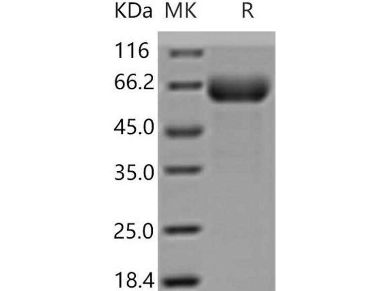 The purity of the protein is greater than 95 % as determined by SDS-PAGE and Coomassie blue staining.