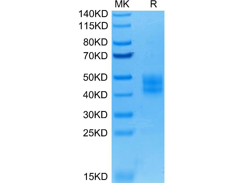 The purity of the protein is greater than 85 % as determined by SDS-PAGE and Coomassie blue staining.
