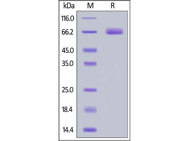 The purity of the protein is greater than 95 % as determined by SDS-PAGE and Coomassie blue staining.