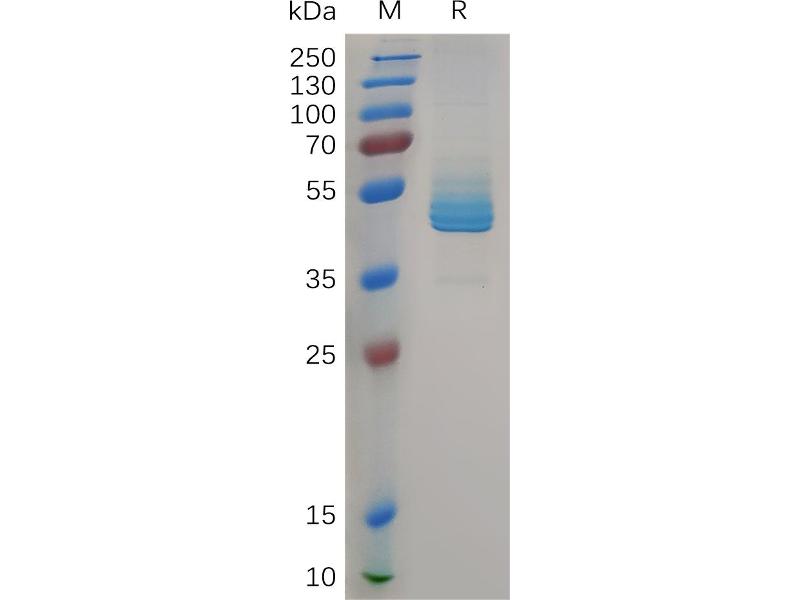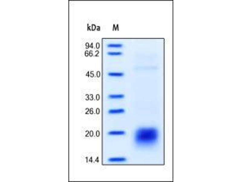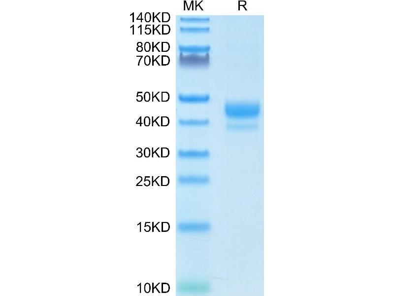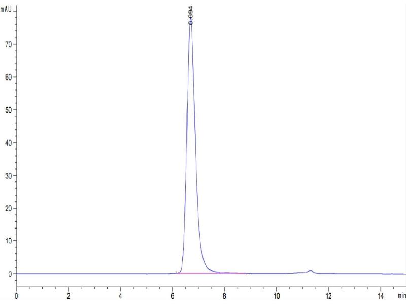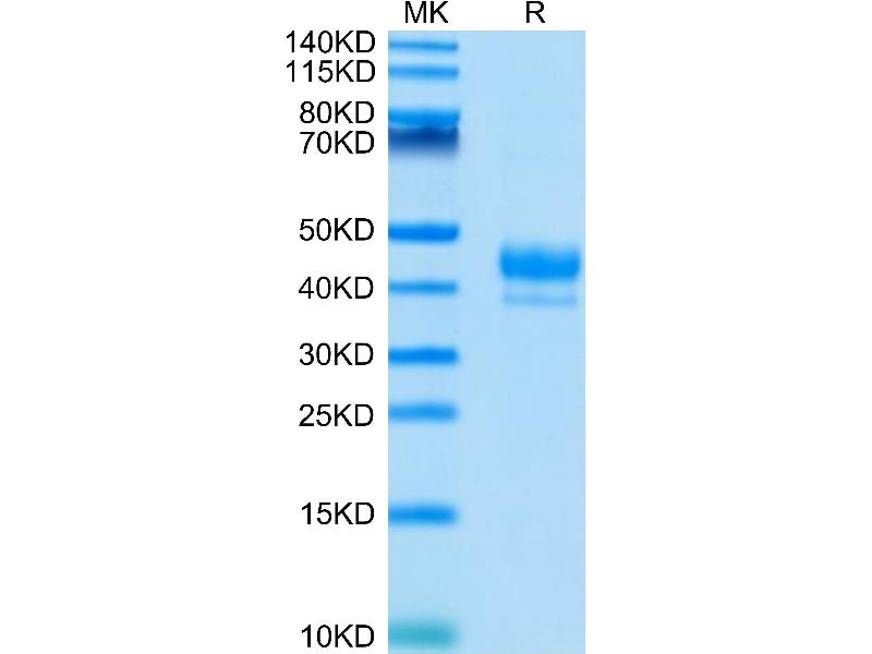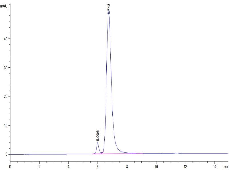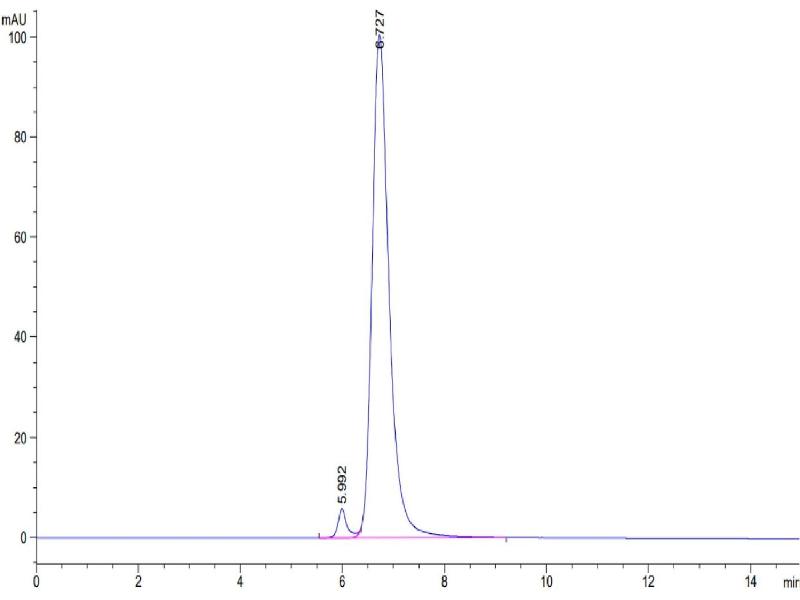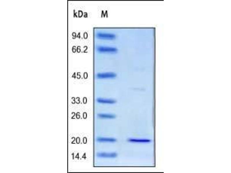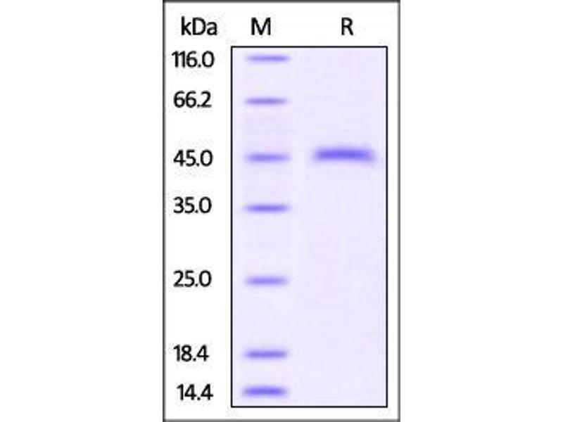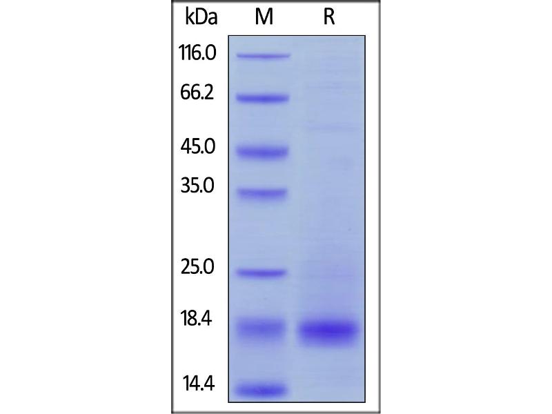 The purity of the protein is greater than 95 % as determined by SDS-PAGE and Coomassie blue staining.