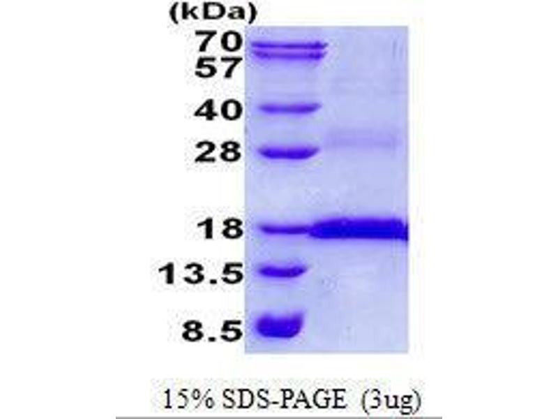 The purity of the protein is greater than 85 % as determined by SDS-PAGE and Coomassie blue staining.