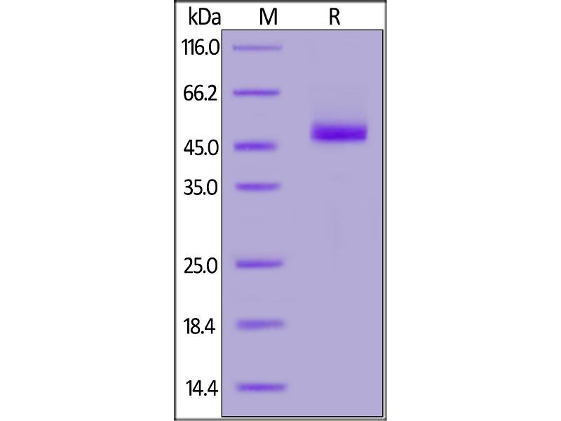 The purity of the protein is greater than 85 % as determined by SDS-PAGE and Coomassie blue staining.