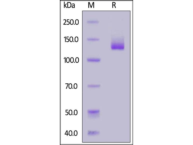 The purity of the protein is greater than 90 % as determined by SDS-PAGE and Coomassie blue staining.