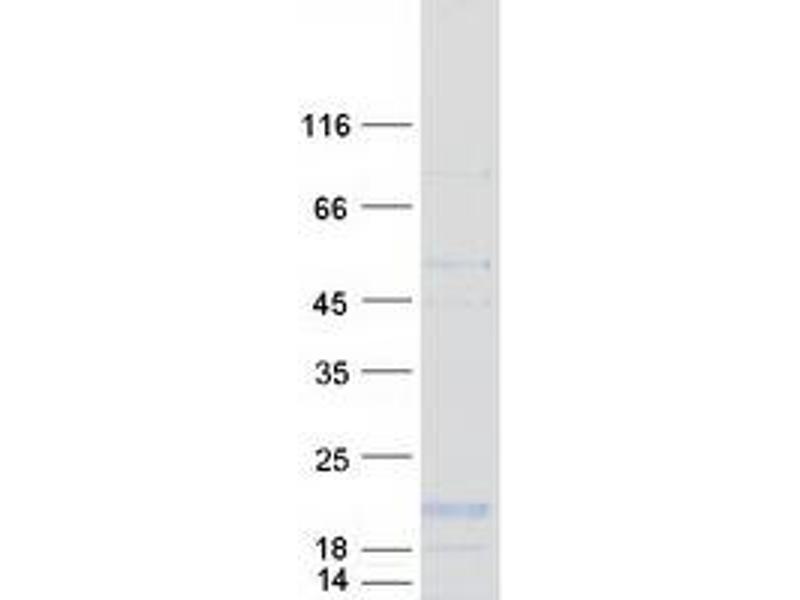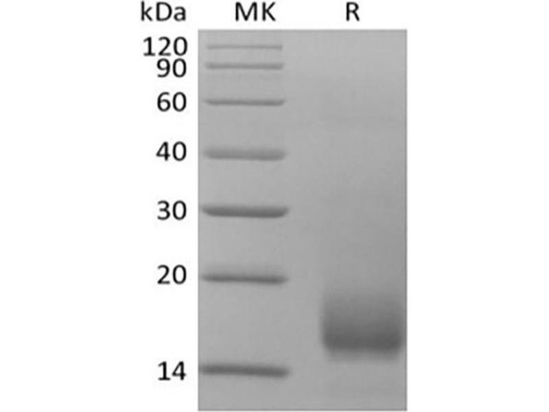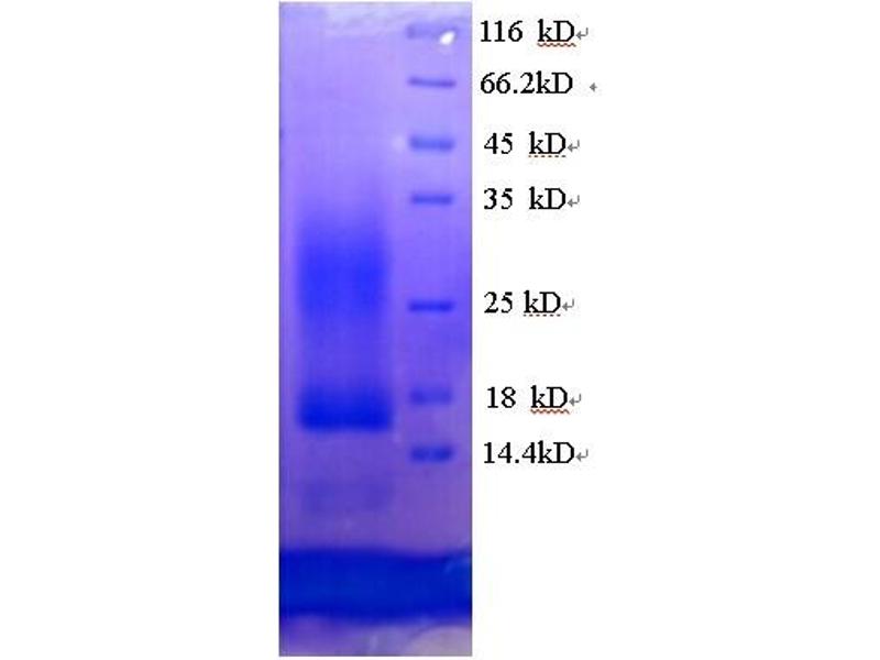 The purity of the protein is greater than 95 % as determined by SDS-PAGE and Coomassie blue staining.