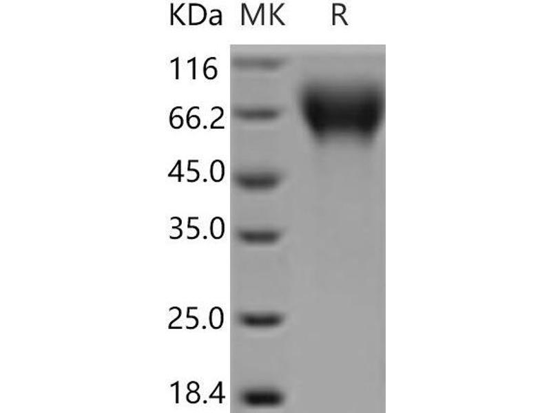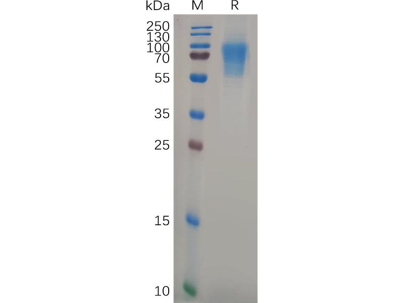 The purity of the protein is greater than 85 % as determined by SDS-PAGE and Coomassie blue staining.