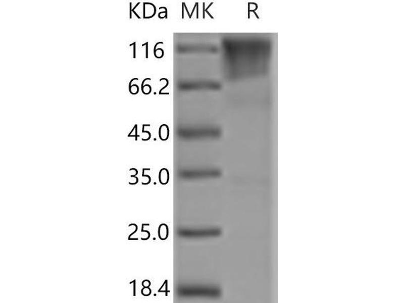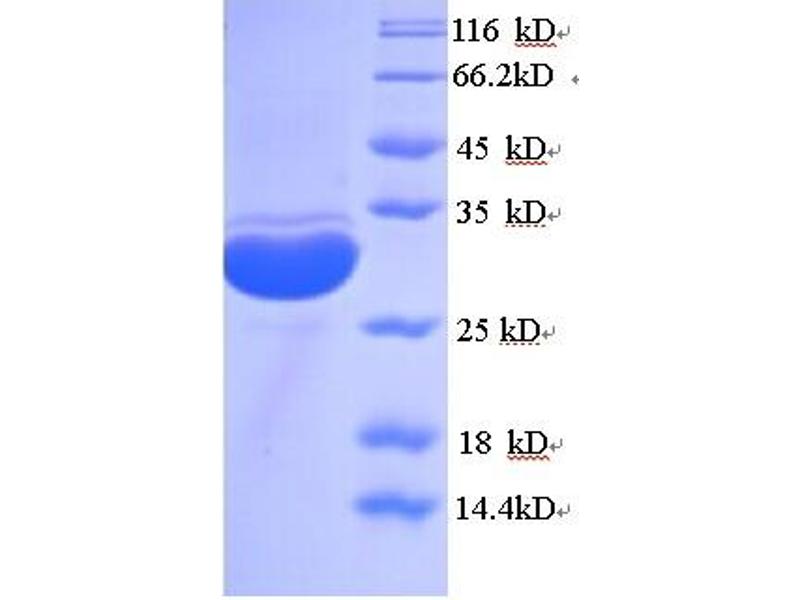 The purity of the protein is greater than 95 % as determined by SDS-PAGE and Coomassie blue staining.