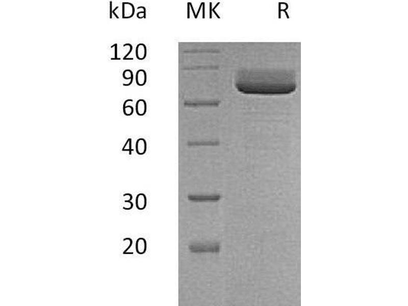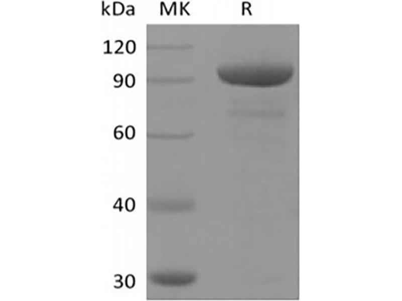 The purity of the protein is greater than 95 % as determined by SDS-PAGE and Coomassie blue staining.