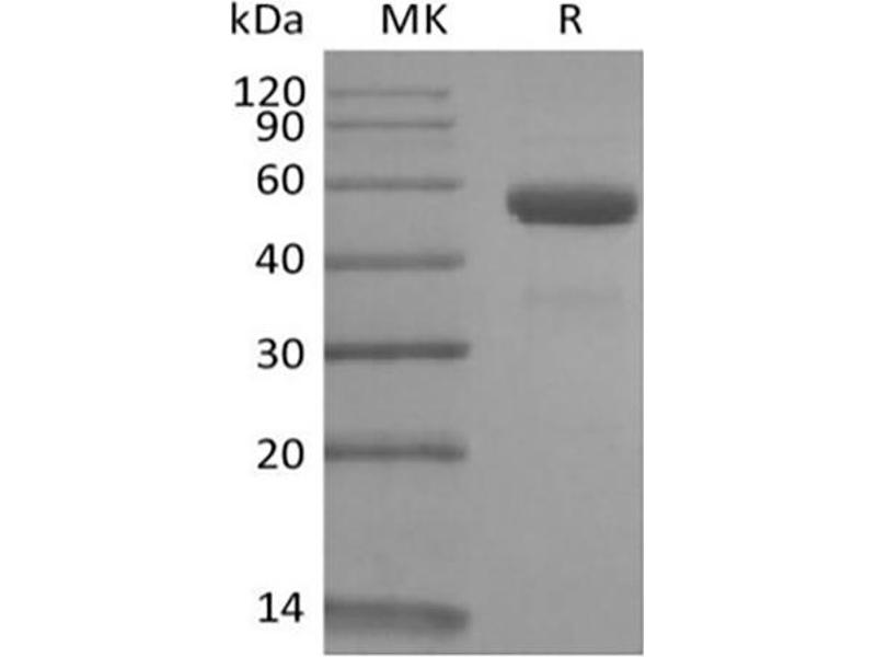 The purity of the protein is greater than 95 % as determined by SDS-PAGE and Coomassie blue staining.
