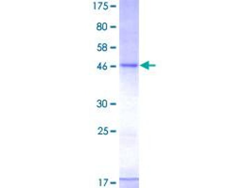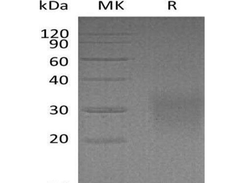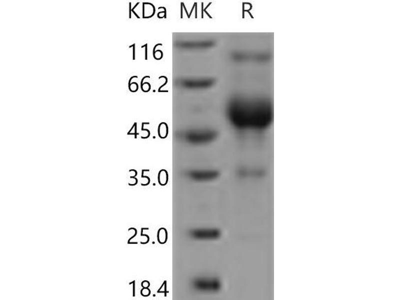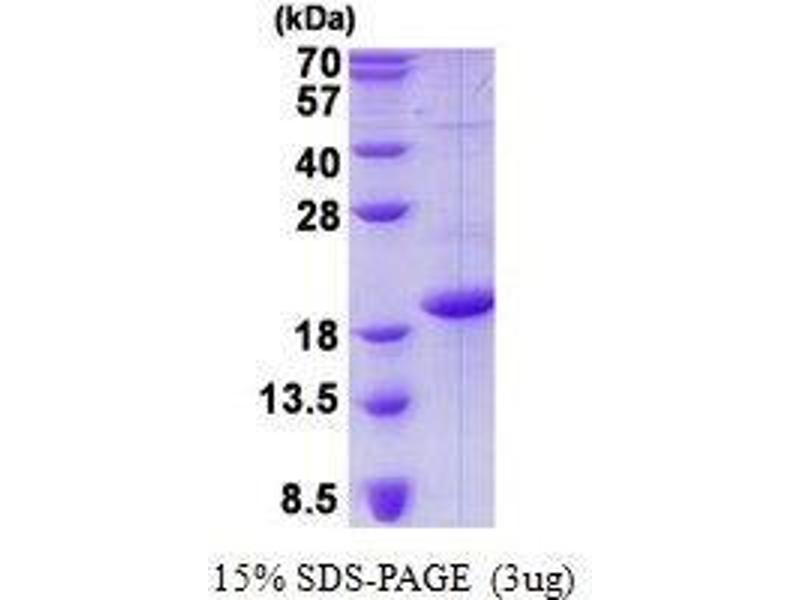 The purity of the protein is greater than 90 % as determined by SDS-PAGE and Coomassie blue staining.