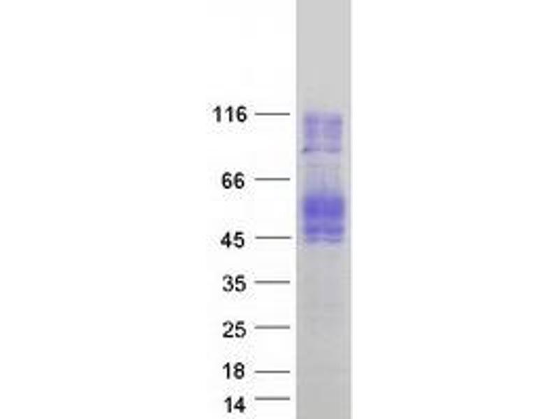 The purity of the protein is greater than 95 % as determined by SDS-PAGE and Coomassie blue staining.