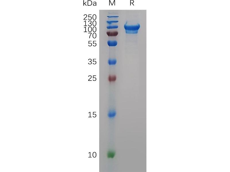 The purity of the protein is greater than 95 % as determined by SDS-PAGE and Coomassie blue staining.