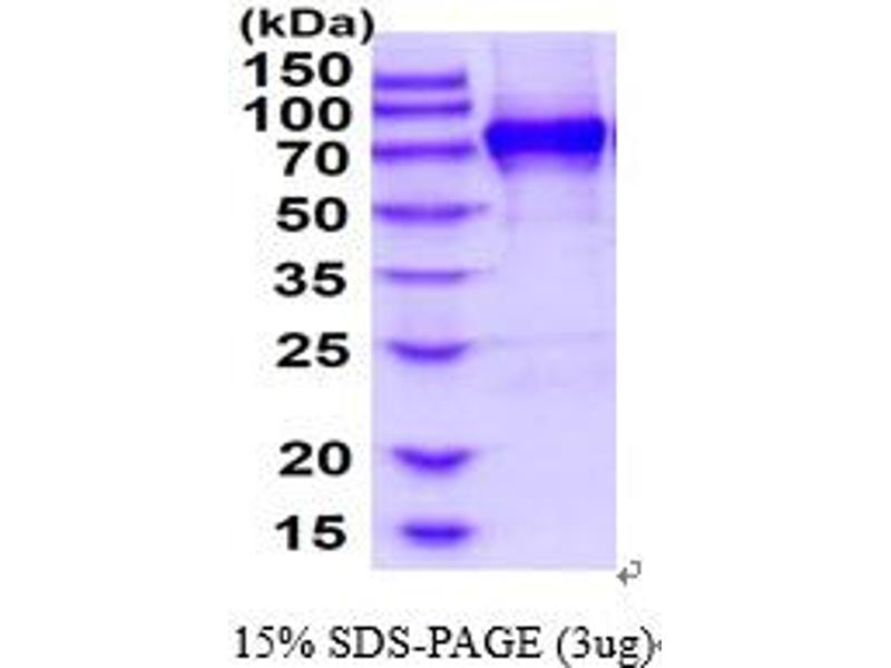 The purity of the protein is greater than 85 % as determined by SDS-PAGE and Coomassie blue staining.
