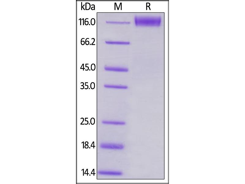 The purity of the protein is greater than 95 % as determined by SDS-PAGE and Coomassie blue staining.