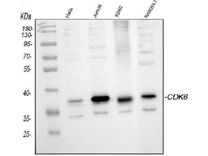 CDK6 适用: 人, 小鼠, 大鼠 WB 宿主: 兔 Monoclonal 4F7 unconjugated