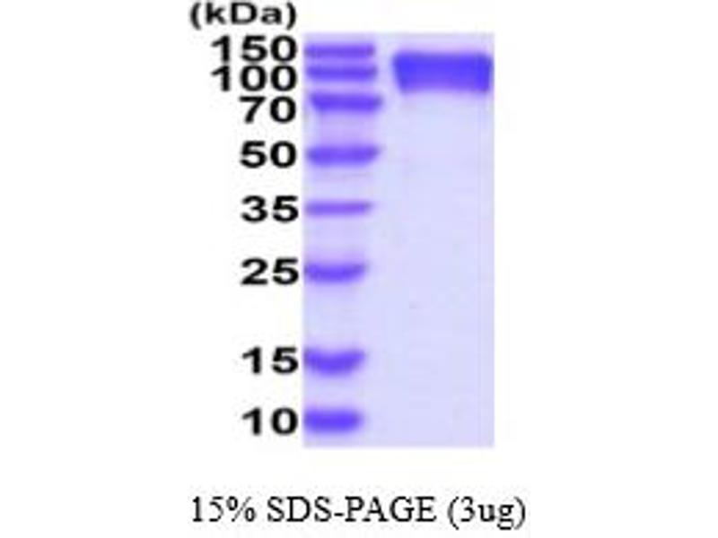 The purity of the protein is greater than 85 % as determined by SDS-PAGE and Coomassie blue staining.