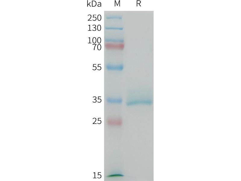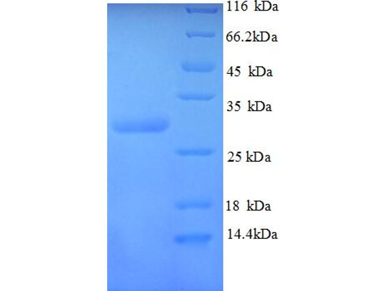 The purity of the protein is greater than 95 % as determined by SDS-PAGE and Coomassie blue staining.