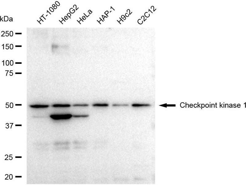 CHEK1 适用: 人, 小鼠, 大鼠, 犬, 小鸡, 兔, 马, 猴, Pig, 豚鼠, Bat, Hamster WB 宿主: 兔 Polyclonal unconjugated