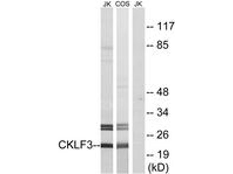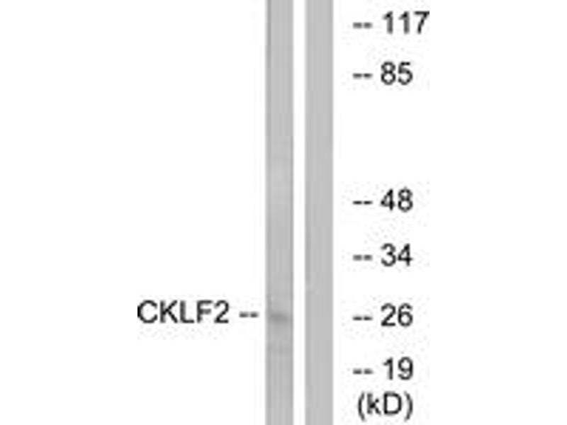 The product of this gene is a cytokine. Cytokines are small proteins that have an essential role in the immune and inflammatory responses. This gene is one of several chemokine-like factor genes located in a cluster on chromosome 16. The protein encoded by this gene is a potent chemoattractant for neutrophils, monocytes and lymphocytes. It also can stimulate the proliferation of skeletal muscle cells. This protein may play important roles in inflammation and in the regeneration of skeletal muscle. Alternatively spliced transcript variants encoding different isoforms have been identified. Naturally occurring read-through transcription occurs between this locus and the neighboring locus CMTM1 (CKLF-like MARVEL transmembrane domain containing 1).[provided by RefSeq, Feb 2011].