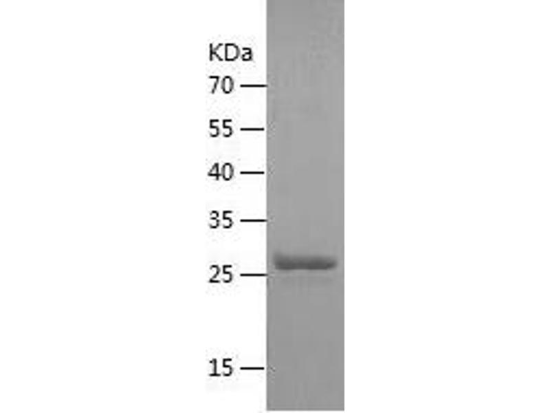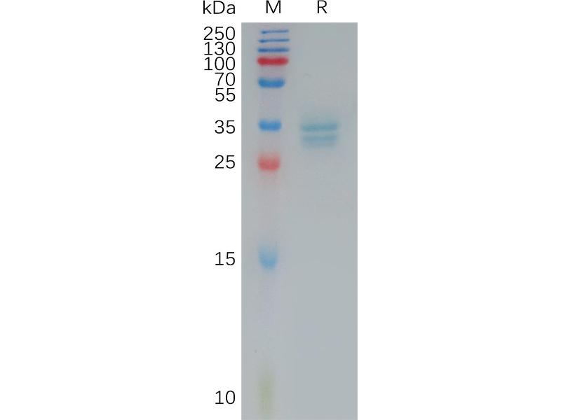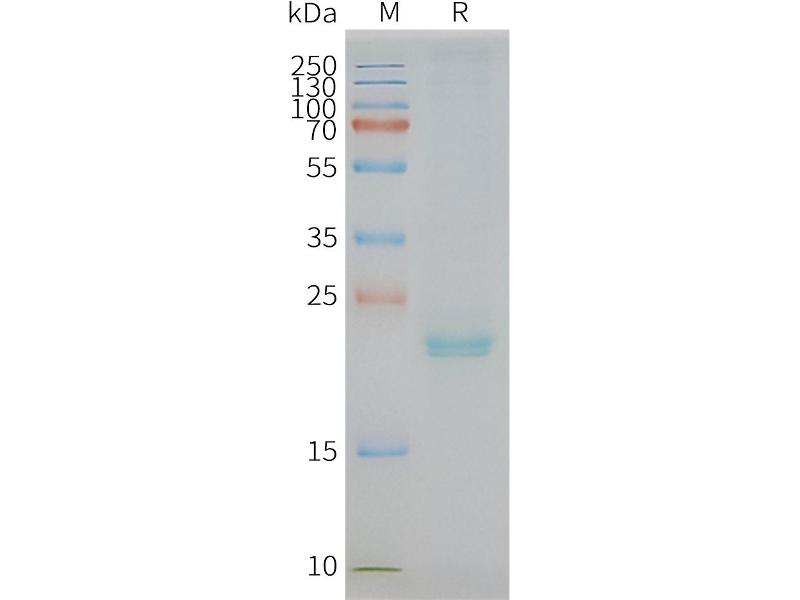 The purity of the protein is greater than 95 % as determined by SDS-PAGE and Coomassie blue staining.