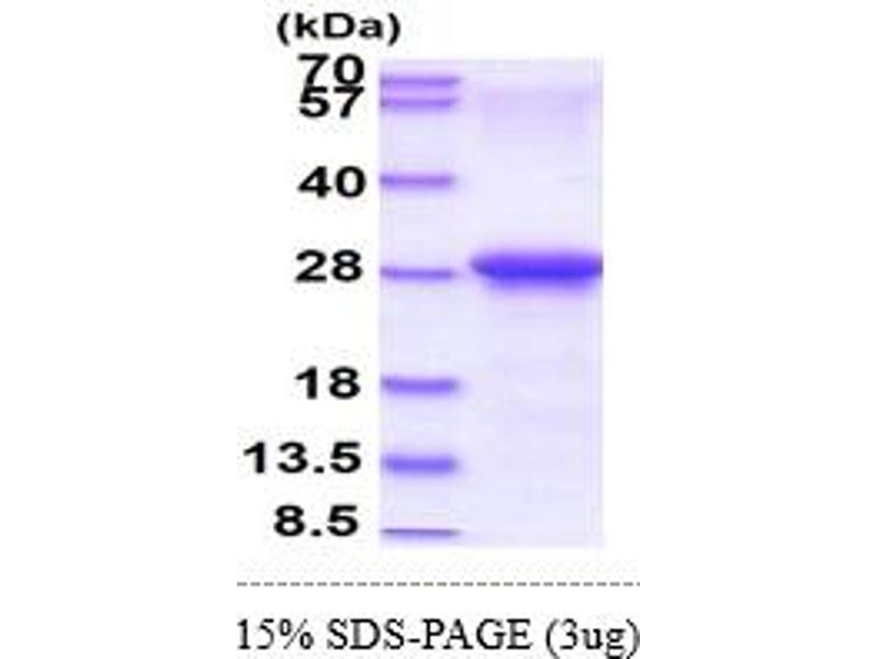 The purity of the protein is greater than 85 % as determined by SDS-PAGE and Coomassie blue staining.