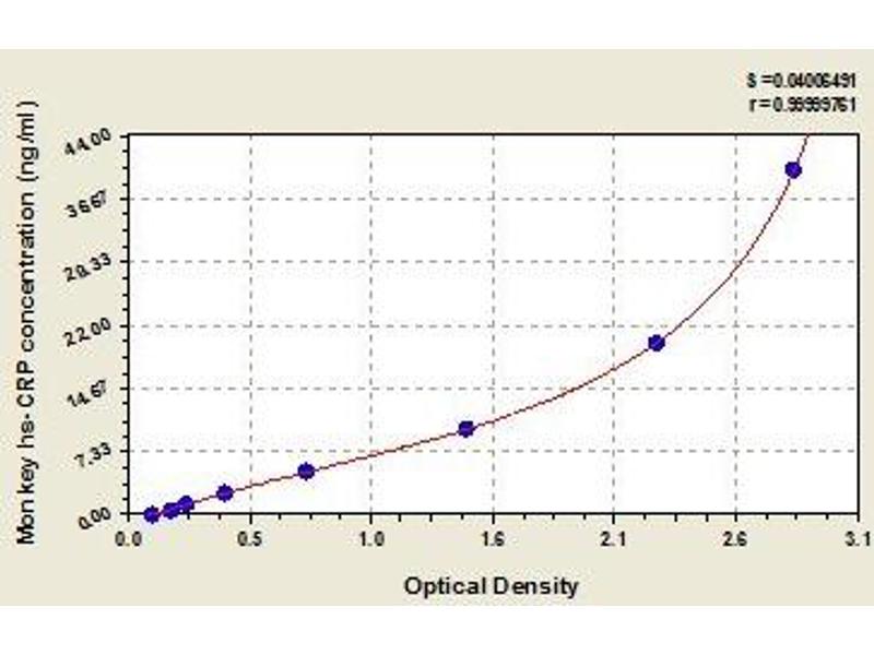 CRP 适用: 猴 Colorimetric Sandwich ELISA 0.625-40 ng/mL Cell Culture Supernatant, Plasma, Serum, Tissue Homogenate