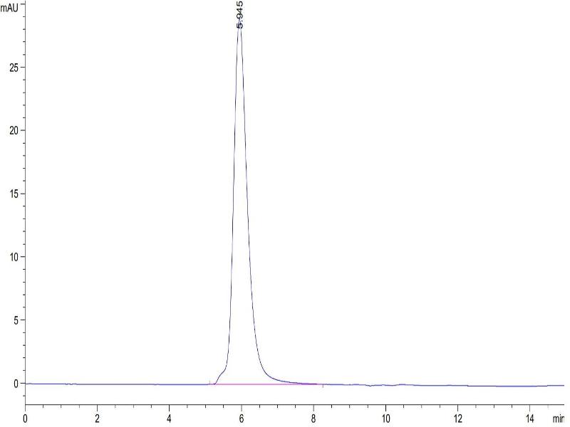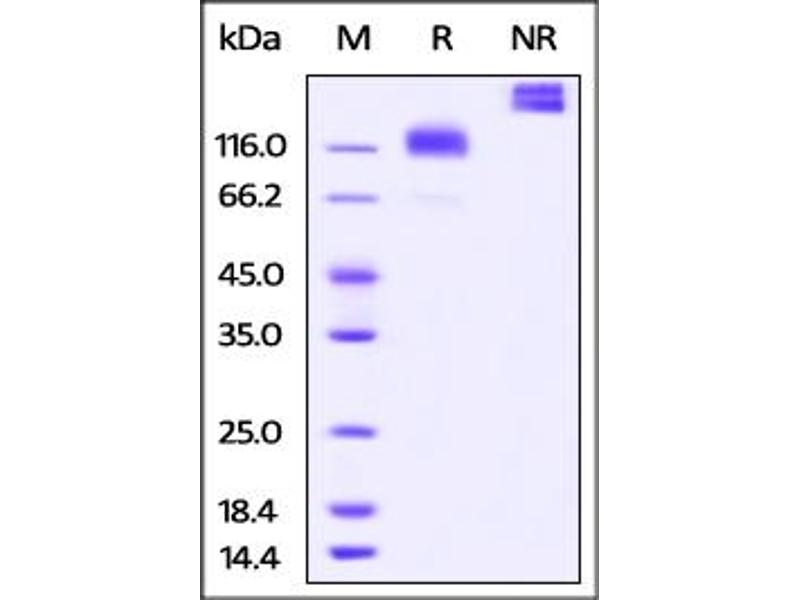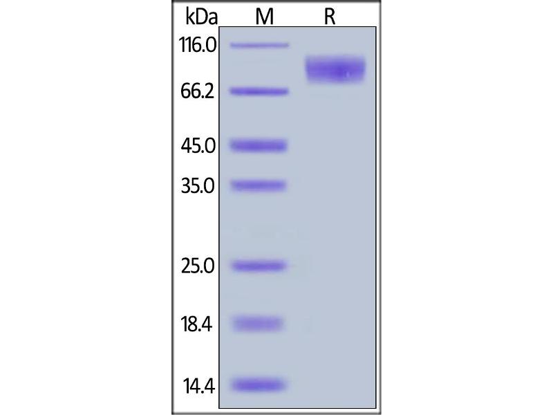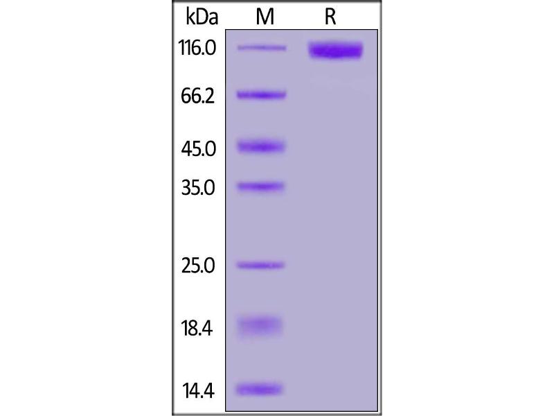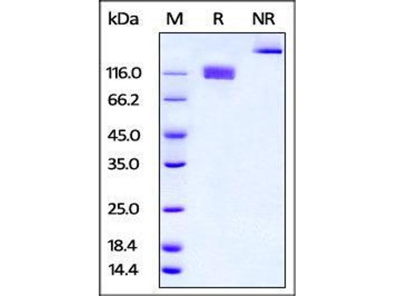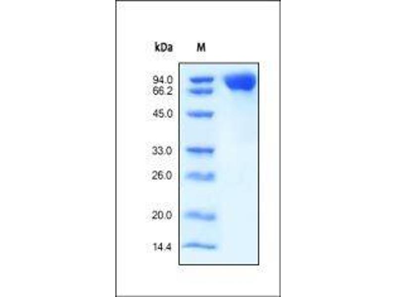 The purity of the protein is greater than 95 % as determined by SDS-PAGE and Coomassie blue staining.