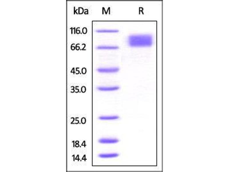 The purity of the protein is greater than 85 % as determined by SDS-PAGE and Coomassie blue staining.