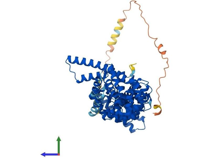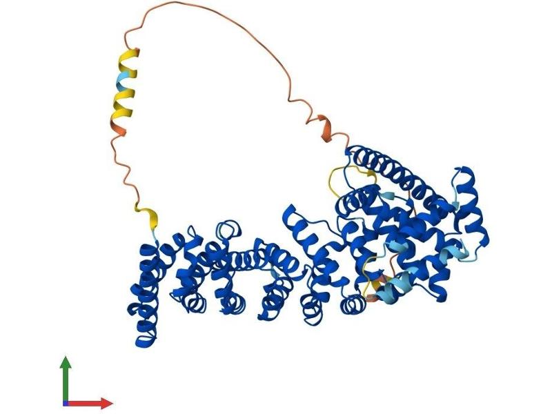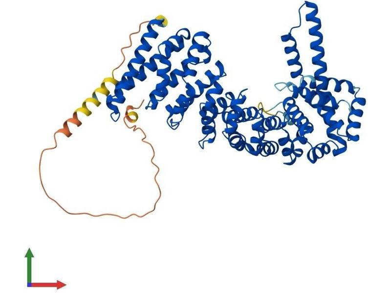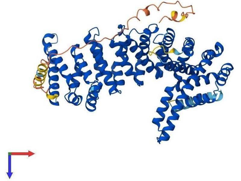The protein encoded by this gene contains an acidic domain, a putative bipartite nuclear localization signal, a nuclear export signal, a leucine-isoleucine zipper, and phosphorylation motifs. In addition, the encoded protein contains Armadillo/beta-catenin-like repeats, which have been implicated in protein-protein interactions. Although the function of this protein has not been determined, the C-terminal portion of the protein has been shown to possess apoptosis-inducing activity. [provided by RefSeq, Jul 2008].