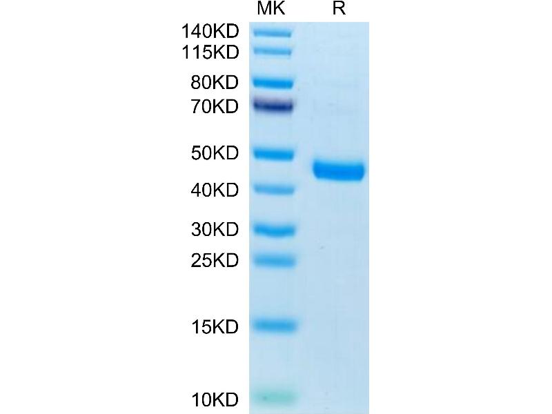 The purity of the protein is greater than 95 % as determined by SDS-PAGE and Coomassie blue staining.