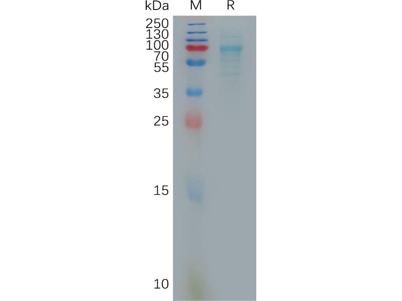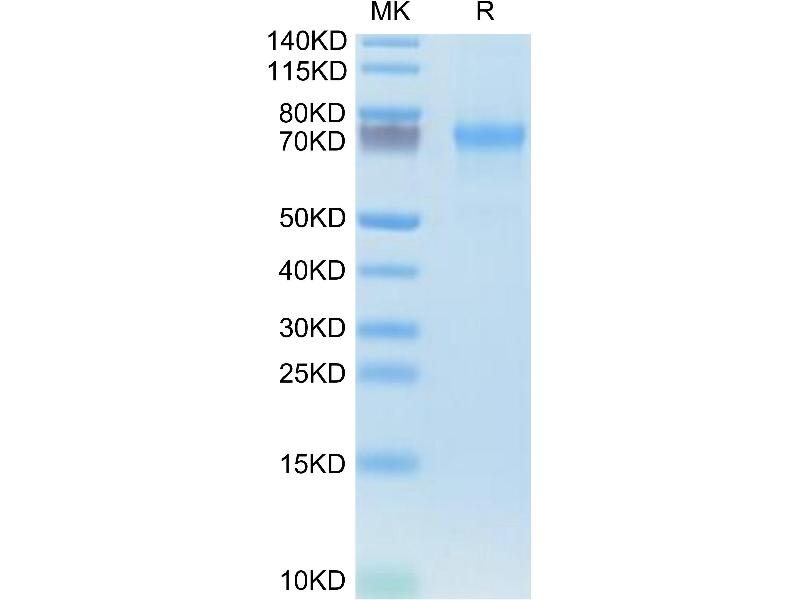 The purity of the protein is greater than 95 % as determined by SDS-PAGE and Coomassie blue staining.