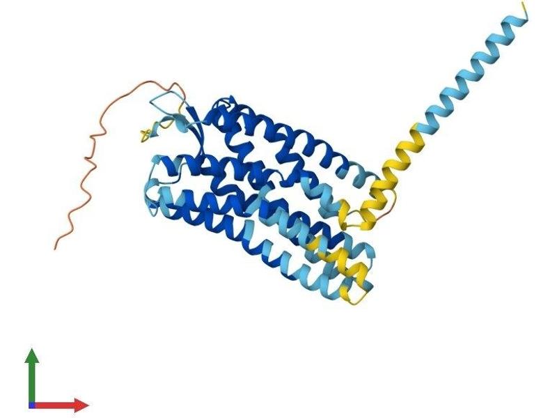 This gene encodes a member of the G-protein coupled receptor family. Although this protein was earlier thought to be a receptor for vasoactive intestinal peptide (VIP), it is now considered to be an orphan receptor, in that its endogenous ligand has not been identified. The protein is also a coreceptor for human immunodeficiency viruses (HIV). Translocations involving this gene and HMGA2 on chromosome 12 have been observed in lipomas. [provided by RefSeq, Jul 2008].