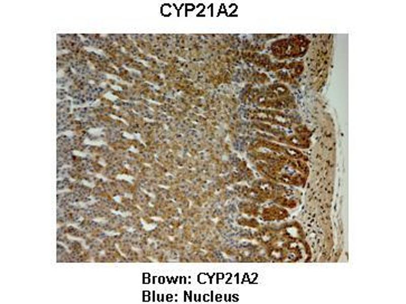 : "Steroidogenic enzyme expression in the human fetal liver and potential role in the endocrinology of pregnancy." in: Molecular human reproduction, Vol. 19, Issue 3, pp. 177-87, (2013) (PubMed).Aliases for CYP21A2 抗体