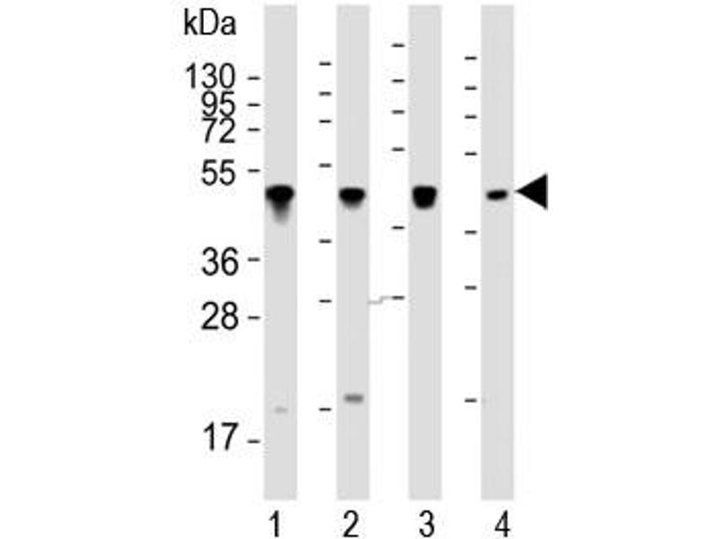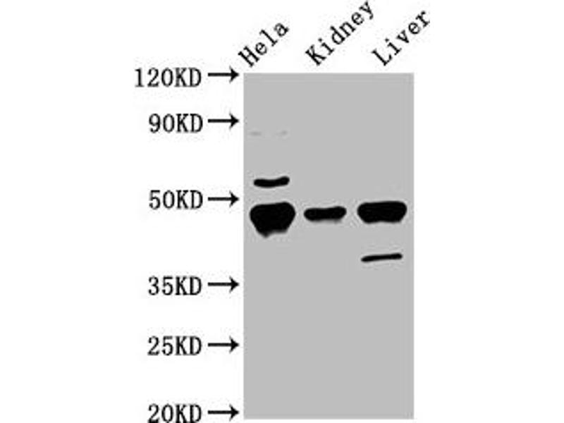 KRT18 适用: 人, 小鼠, 大鼠, 犬, Cow, 马, 兔, 豚鼠 WB, IHC 宿主: 兔 Polyclonal unconjugated