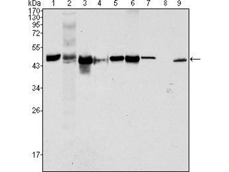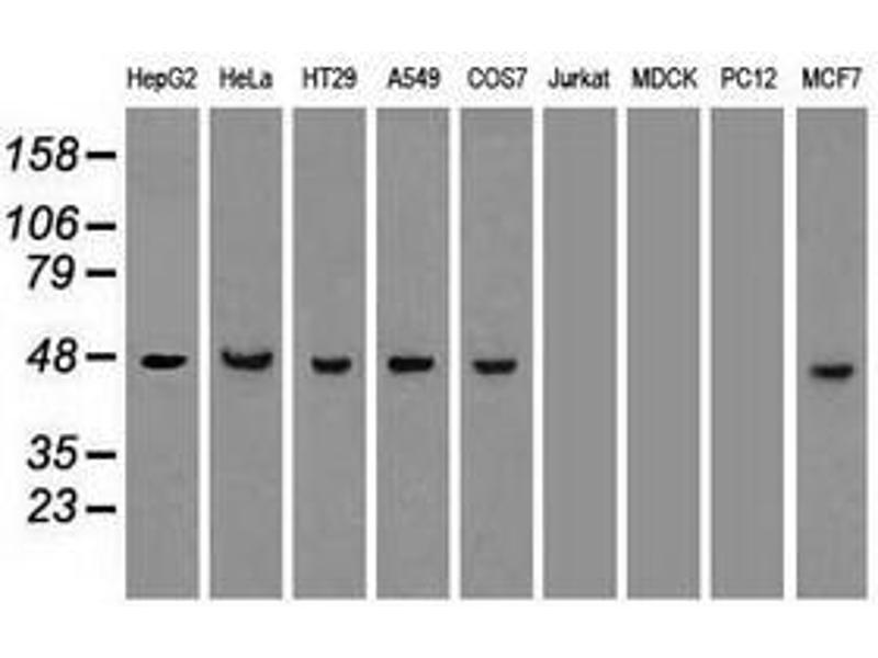 KRT18 适用: 人, 小鼠, 大鼠, 犬, Pig, Hamster, 兔, 斑马鱼, 小鸡 WB, IHC, FACS, ICC, IHC (fro) 宿主: 小鼠 Monoclonal RGE53 unconjugated