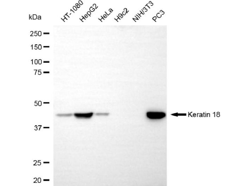 KRT18 适用: 人 WB, FACS, IHC (p), IF (cc) 宿主: 兔 Monoclonal 1F11 unconjugated