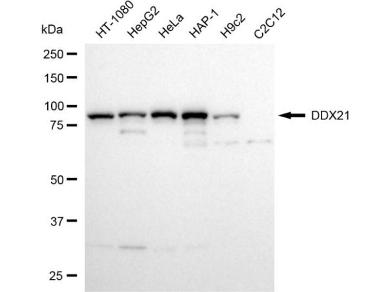DDX21 适用: 人, 大鼠, 马, 犬, Pig, Cow, 豚鼠, 兔 WB 宿主: 兔 Polyclonal unconjugated