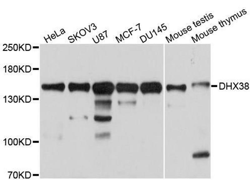 DEAD box proteins, characterized by the conserved motif Asp-Glu-Ala-Asp (DEAD), are putative RNA helicases. They are implicated in a number of cellular processes involving alteration of RNA secondary structure such as translation initiation, nuclear and mitochondrial splicing, and ribosome and spliceosome assembly. Based on their distribution patterns, some members of this family are believed to be involved in embryogenesis, spermatogenesis, and cellular growth and division. The protein encoded by this gene is a member of the DEAD/H box family of splicing factors. This protein resembles yeast Prp16 more closely than other DEAD/H family members. It is an ATPase and essential for the catalytic step II in pre-mRNA splicing process. [provided by RefSeq, Jul 2008].