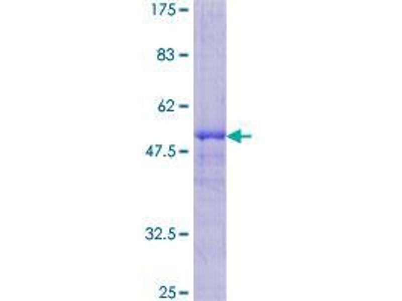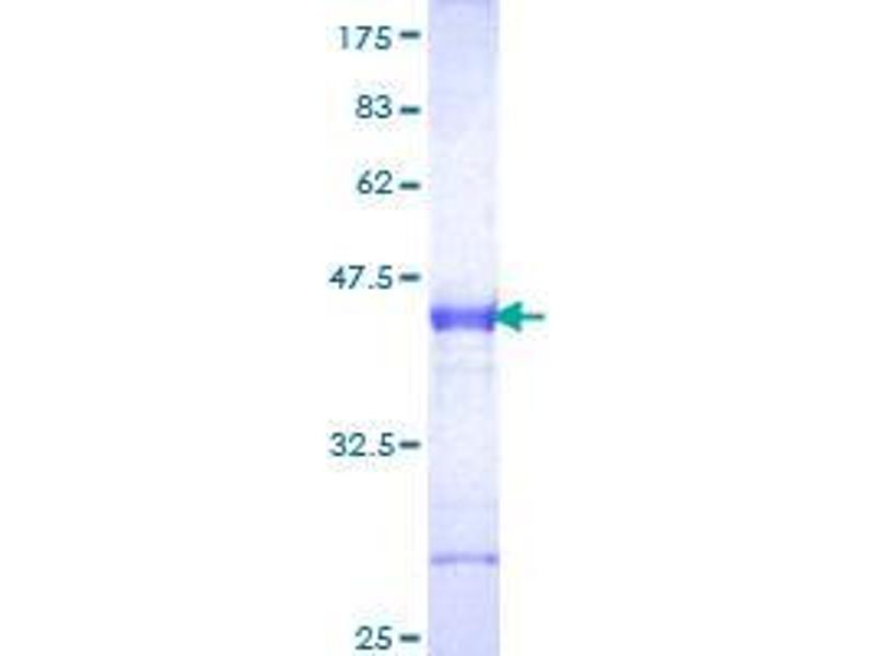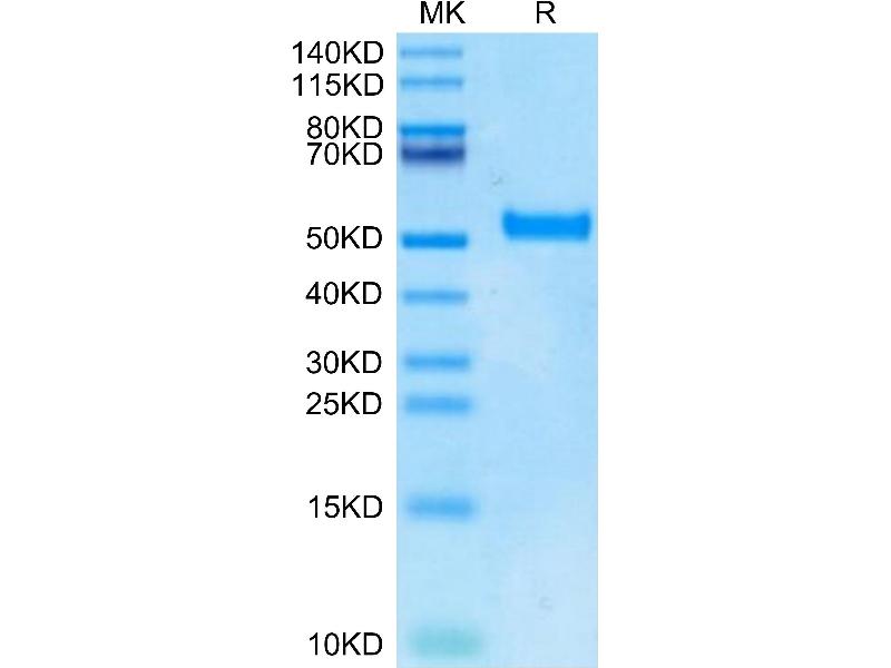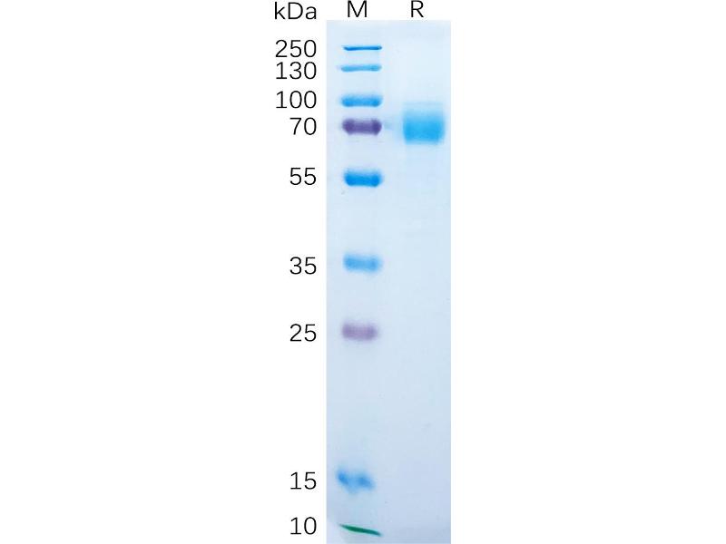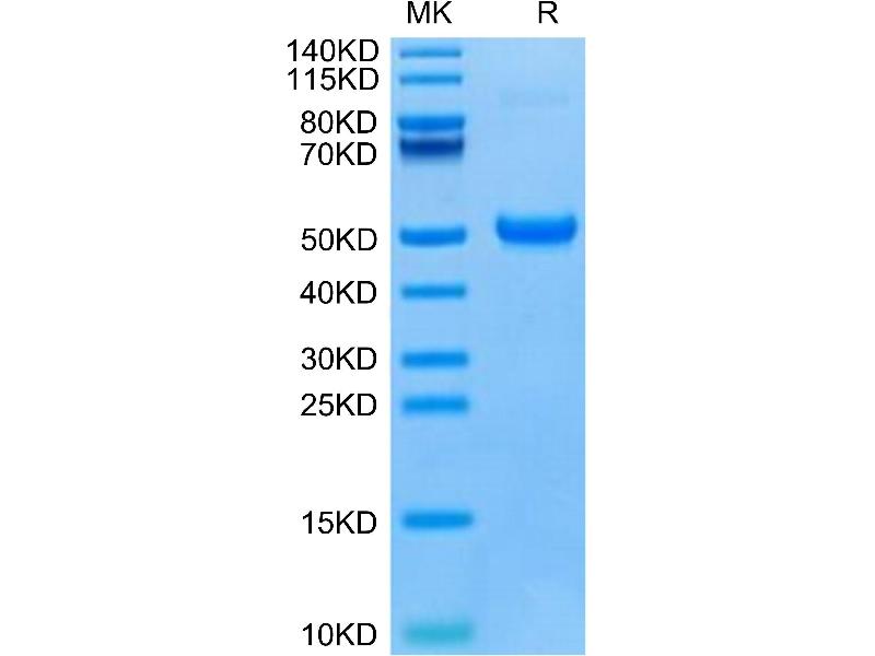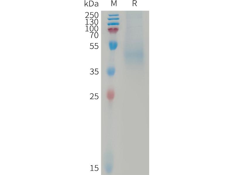 The purity of the protein is greater than 90 % as determined by SDS-PAGE and Coomassie blue staining.