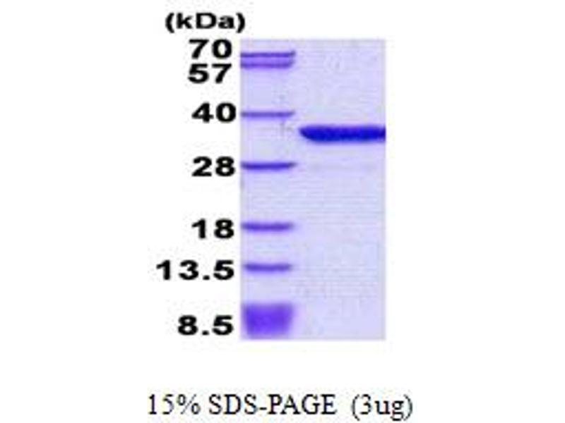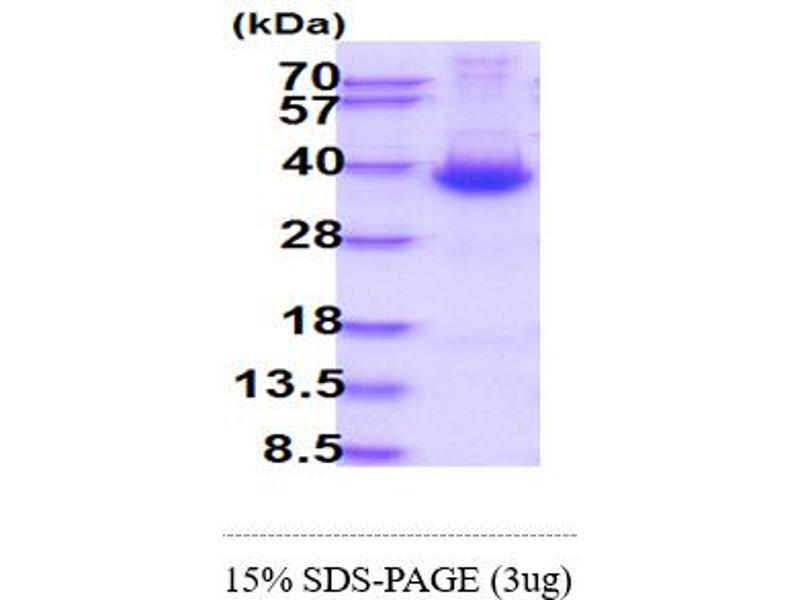 The purity of the protein is greater than 85 % as determined by SDS-PAGE and Coomassie blue staining.
