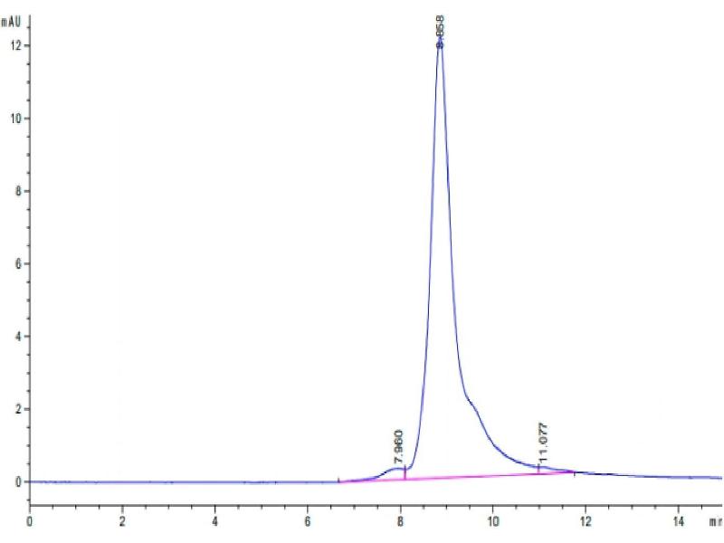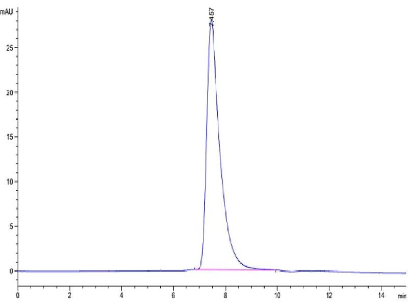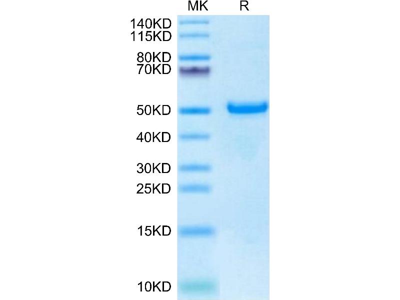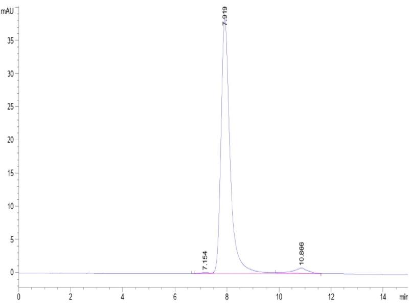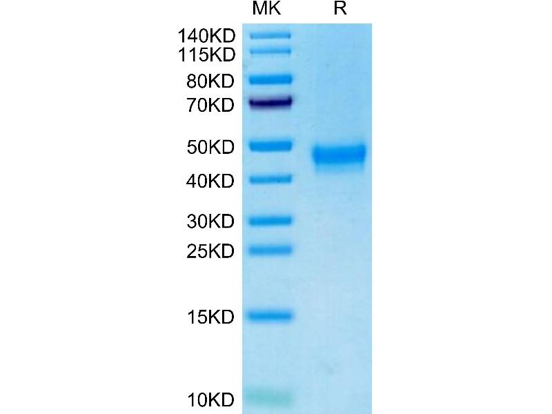 The purity of the protein is greater than 95 % as determined by SDS-PAGE and Coomassie blue staining.
