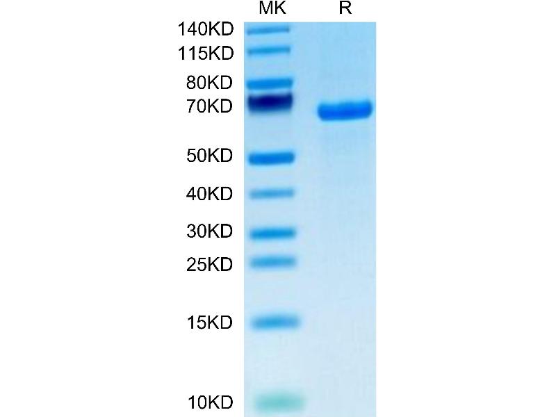 The purity of the protein is greater than 85 % as determined by SDS-PAGE and Coomassie blue staining.