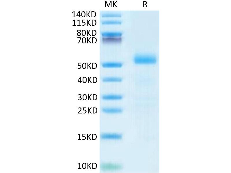 The purity of the protein is greater than 80 % as determined by SDS-PAGE and Coomassie blue staining.