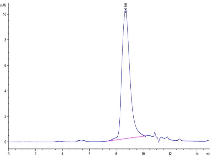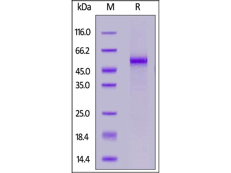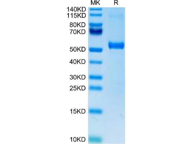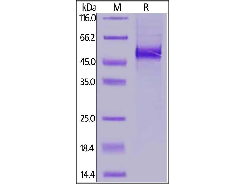 The purity of the protein is greater than 95 % as determined by SDS-PAGE and Coomassie blue staining.