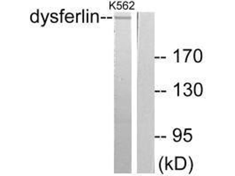 The protein encoded by this gene belongs to the ferlin family and is a skeletal muscle protein found associated with the sarcolemma. It is involved in muscle contraction and contains C2 domains that play a role in calcium-mediated membrane fusion events, suggesting that it may be involved in membrane regeneration and repair. In addition, the protein encoded by this gene binds caveolin-3, a skeletal muscle membrane protein which is important in the formation of caveolae. Specific mutations in this gene have been shown to cause autosomal recessive limb girdle muscular dystrophy type 2B (LGMD2B) as well as Miyoshi myopathy. Alternative splicing results in multiple transcript variants. [provided by RefSeq, Aug 2008].