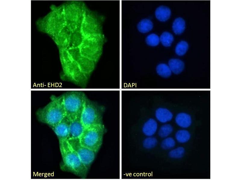 This gene encodes a member of the EH domain-containing protein family. These proteins are characterized by a C-terminal EF-hand domain, a nucleotide-binding consensus site at the N terminus and a bipartite nuclear localization signal. The encoded protein interacts with the actin cytoskeleton through an N-terminal domain and also binds to an EH domain-binding protein through the C-terminal EH domain. This interaction appears to connect clathrin-dependent endocytosis to actin, suggesting that this gene product participates in the endocytic pathway. [provided by RefSeq, Jul 2008].