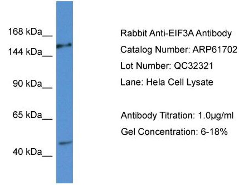 EIF3A 适用: 人 WB, EIA 宿主: 兔 Polyclonal unconjugated